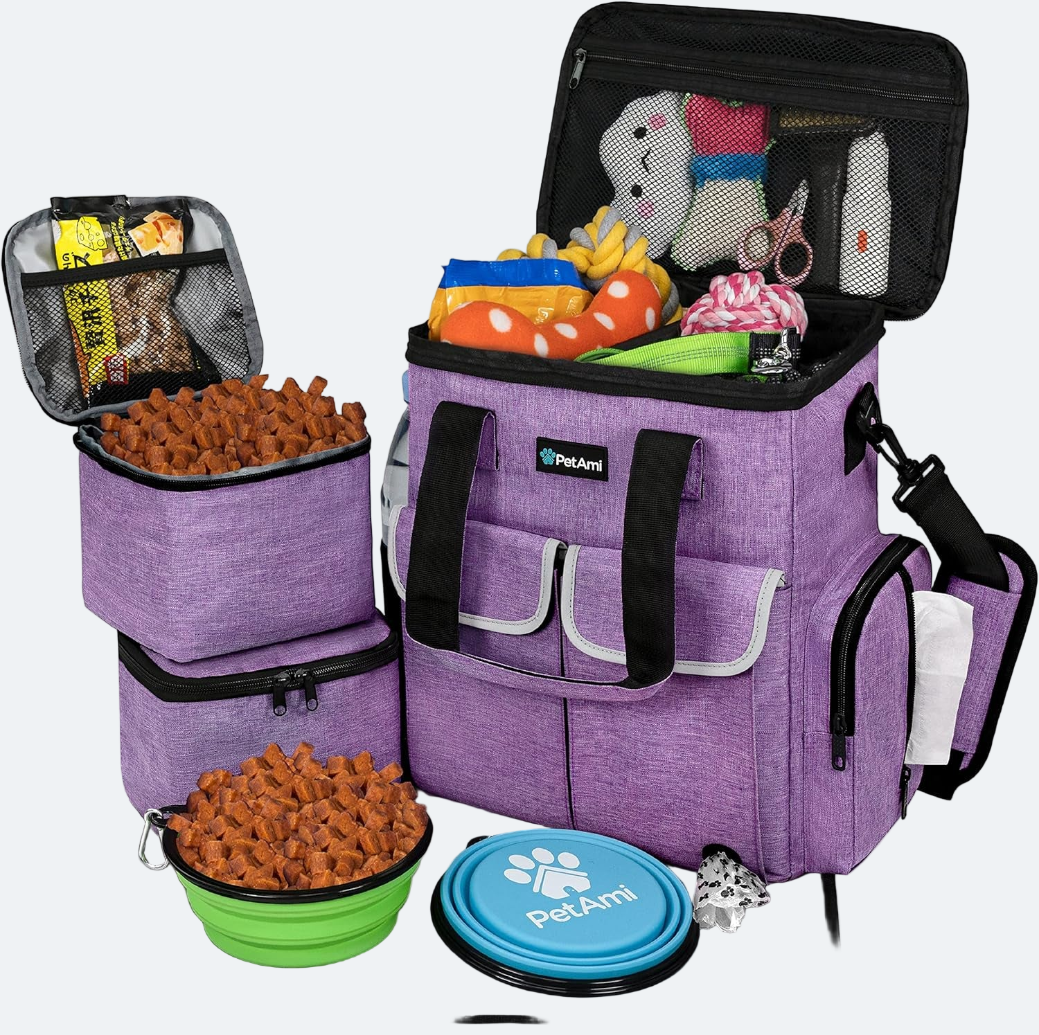 The comfortable handles and adjustable shoulder strap make carrying effortless. Perfect for cars, flights, hotels, or simply visiting friends and family, this travel kit simplifies pet care anywhere you go.